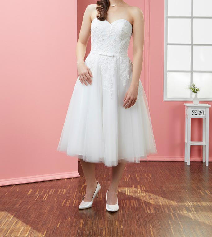 Das Angebot reicht von klassischen A-Linie-Kleidern bis hin zu Modellen im Vintage-Look, von reinweiß bis hin zu verschiedenen Farbnuancen (z.B. ivory, elfenbein, lightweiß, creme mit bordeaux, rosa). Unser Sortiment umfasst zahlreiche Konfektionsgrößen von 36 bis 60. Passend für unsere preiswert erhältlichen Traumkleider finden Sie bei uns eine große Auswahl an Accessoires. Diese reicht vom Schleier über diversen Schmuck bis hin zu zweckmäßigen Dessous. Möchten Sie auf eine Neuanschaffung verzichten, können Sie Brautkleider bei uns günstig leihen.